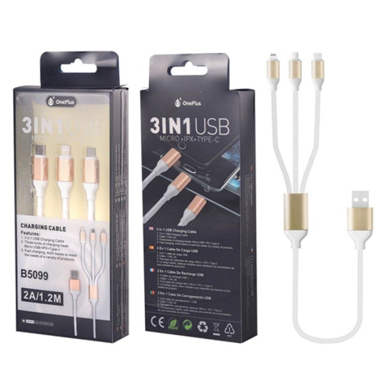 B5099, 3in1 Data Cable, Micro USB+IPX+Type C, 1.2m