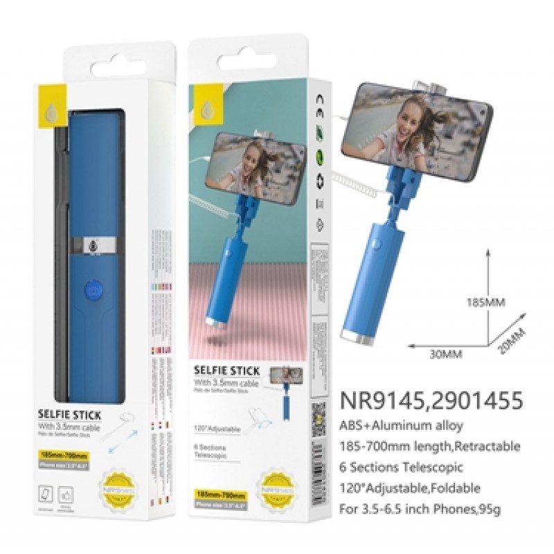 NR9145 Selfie Stick with 3.5mm cable, Compatible with Mobiles 3.5-6.5, 18.5cm-70cm